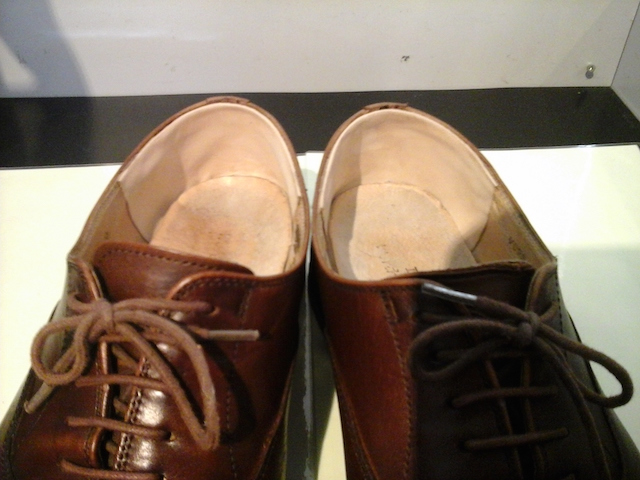 いつも当店ご利用誠に有難うございます。今回は紳士靴のすべり革修理をご紹介いたします。紳士靴のかかとの内側の革はしばらく履いてておりますと擦れて破れてくることがあります。履いていて特に不…